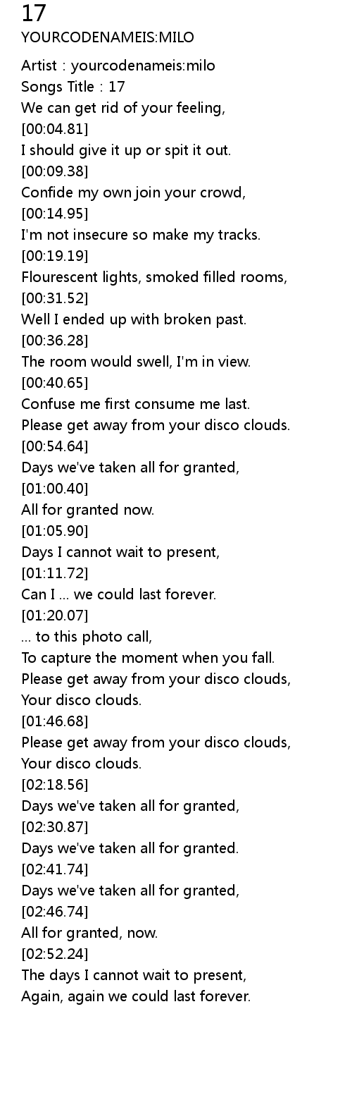 | [00:00.00] | Artist: yourcodenameis: milo |