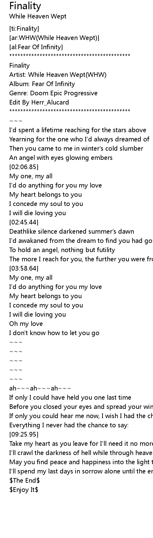 [00:10.33] Artist: While Heaven Wept(WHW)