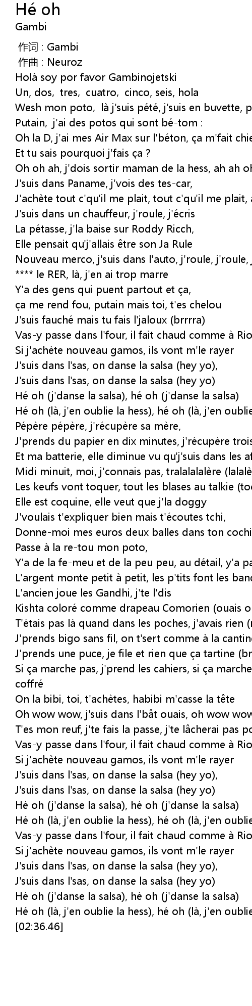 | [02:24.42] | J' suis dans l' sas, on danse la salsa hey yo |