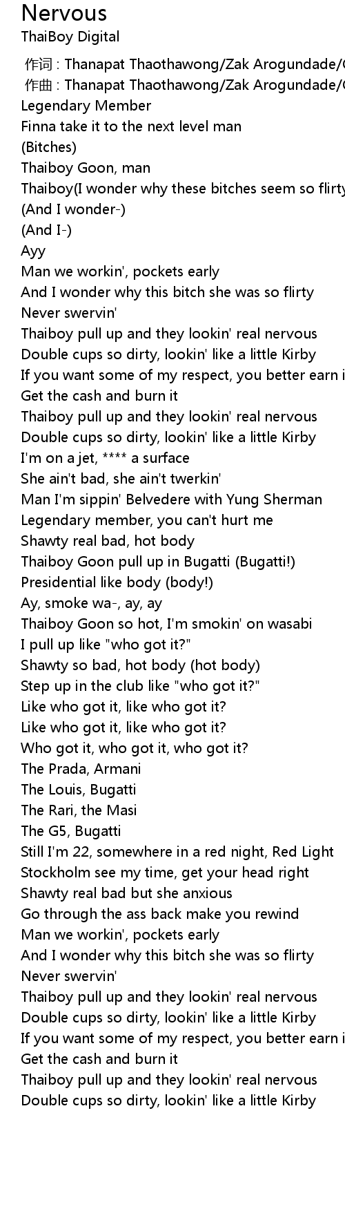 | [00:50.40] | Thaiboy pull up and they lookin' real nervous |