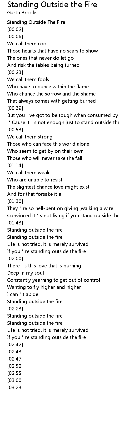 | [00:46] | 'Cause it's not enough just to stand outside the fire |