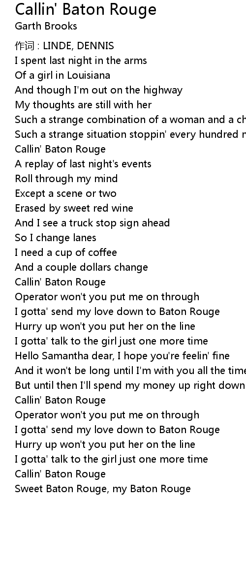 | 歌曲 | Callin' Baton Rouge |