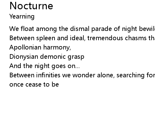 | Between infinities we wonder alone, searching for home until the struggle will once cease to be |