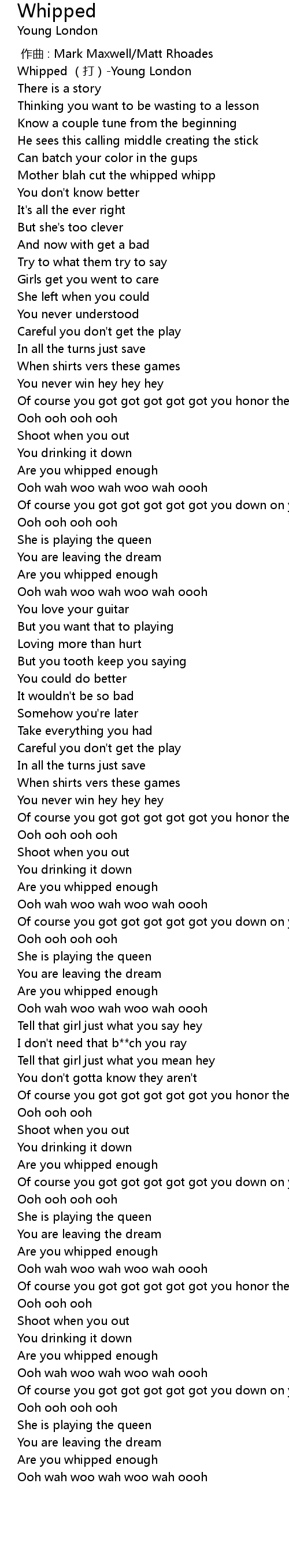| [00:17.219] | Mother blah cut the whipped whipp |