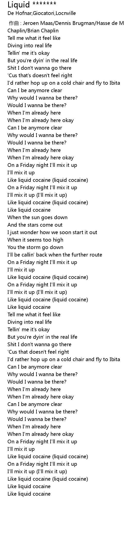 | [00:46.88] | Like liquid cocaine liquid cocaine |