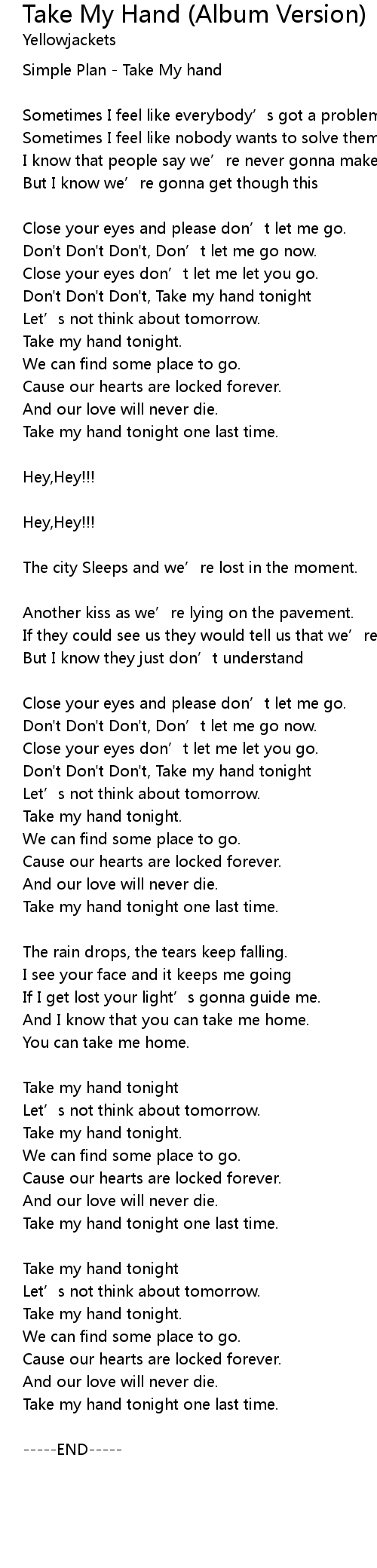 | Simple Plan - Take My hand | |
