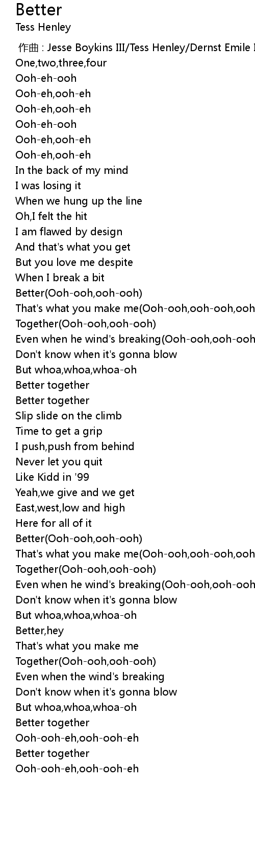 | [01:47.87] | Better(Ooh-ooh,ooh-ooh) |