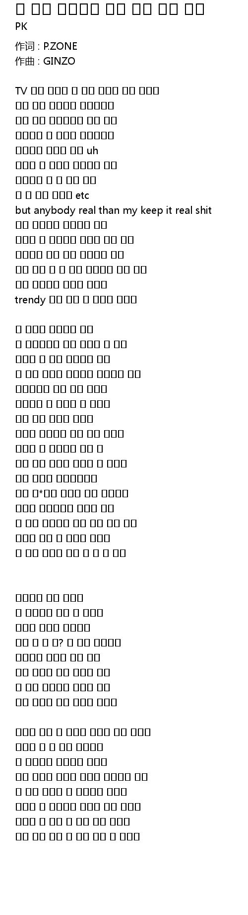 | 作词 : P.ZONE | |