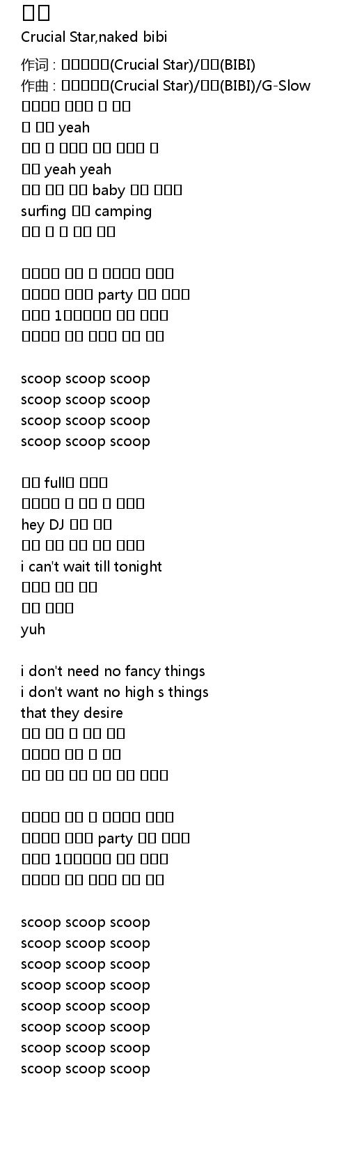 | 作词 : 크루셜스타(Crucial Star)/비비(BIBI) | |
