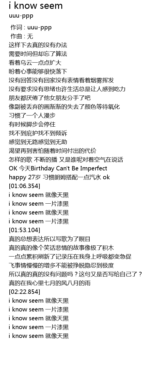 | [01:35.604] | i know seem yī piàn qī hēi |