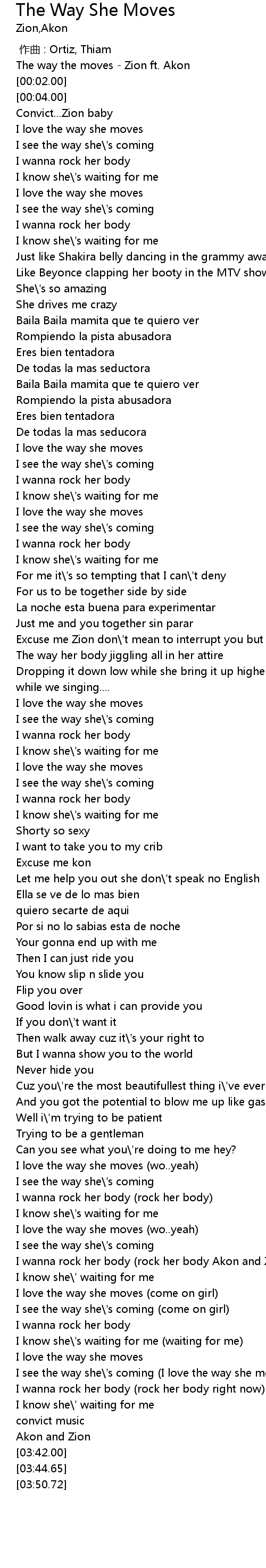 | [00:00.00] | The way the moves - Zion ft. Akon |