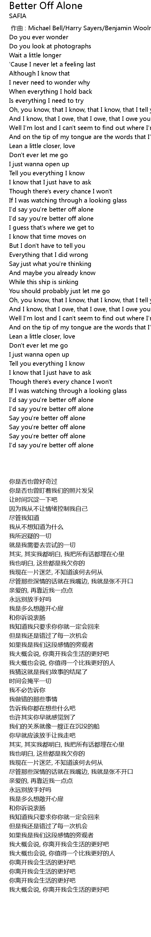 | 歌曲 | Better Off Alone |