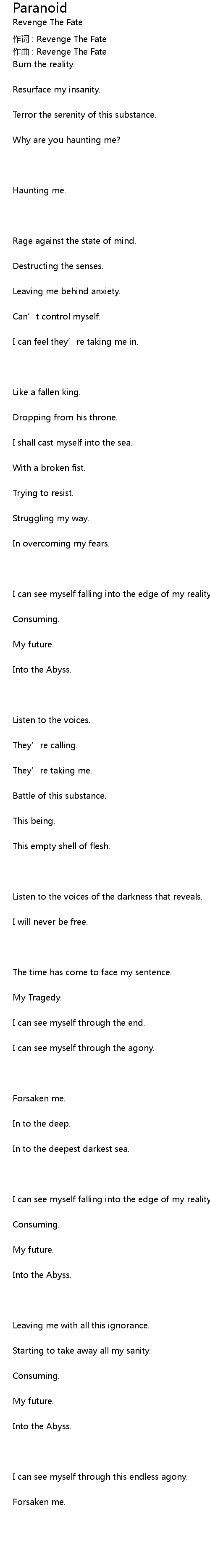 | 作词 : Revenge The Fate | |