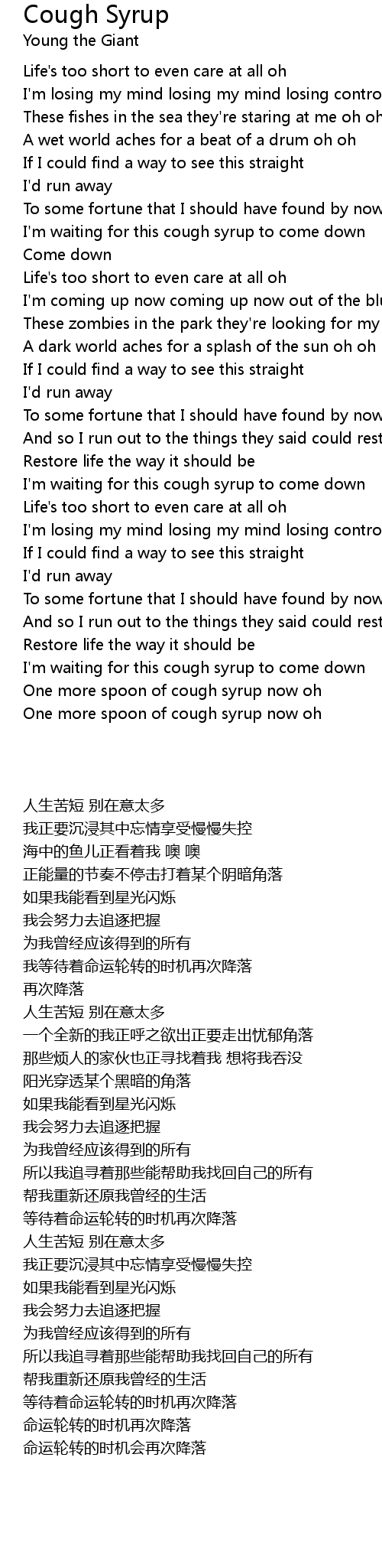 One more spoon of cough syrup now oh |