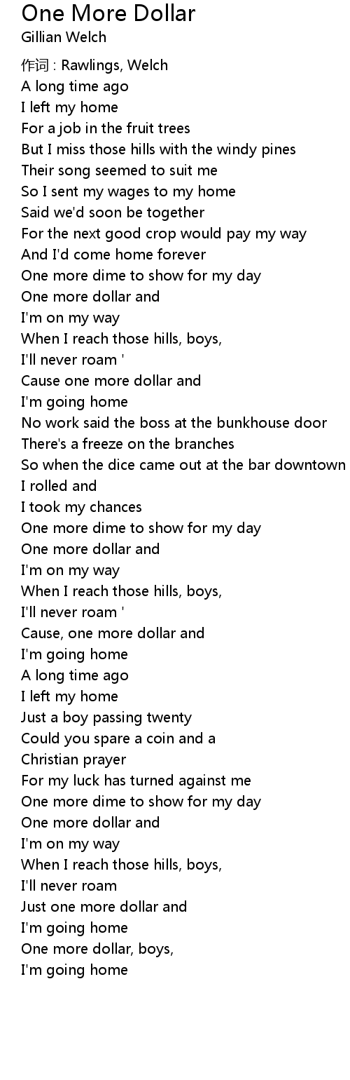 | 歌曲 | One More Dollar |