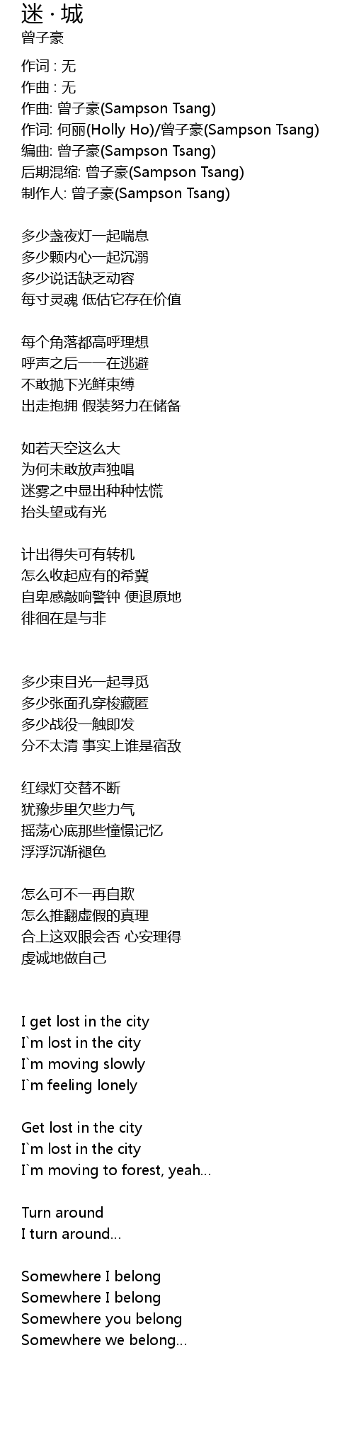 | 作曲: 曾子豪(Sampson Tsang) | |