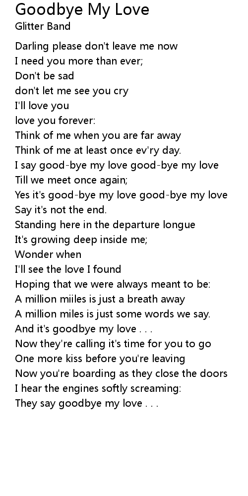 Yes it's good-bye my love good-bye my love |