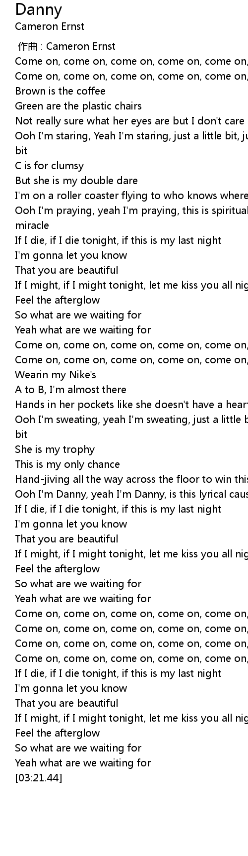 | [01:51.02] | Ooh I' m Danny, yeah I' m Danny, is this lyrical cause I need a miracle |