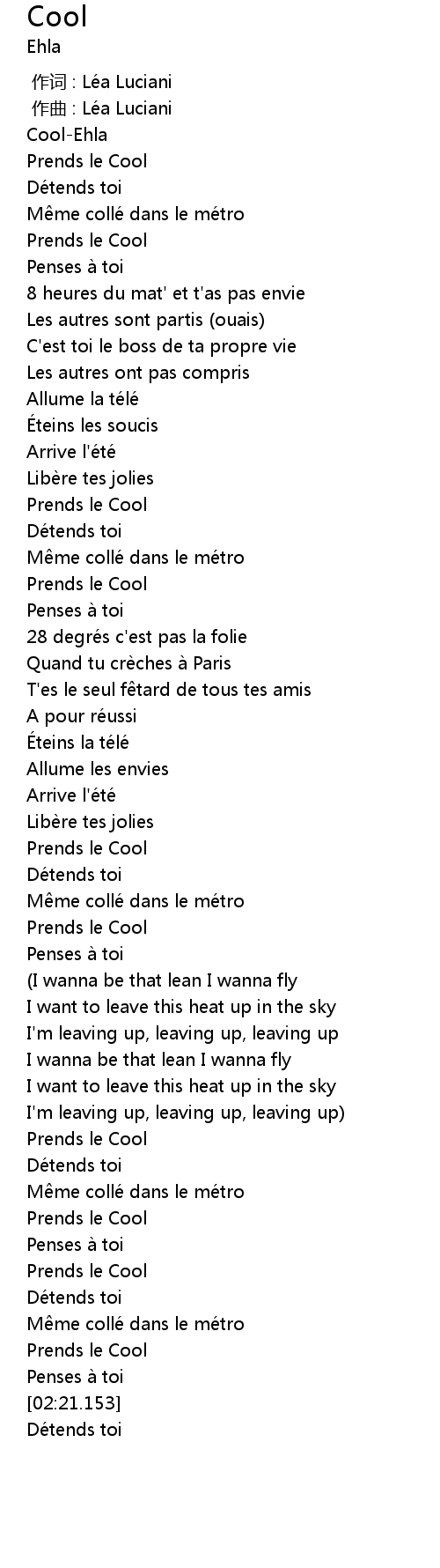 | [01:30.841] | I wanna be that lean I wanna fly |