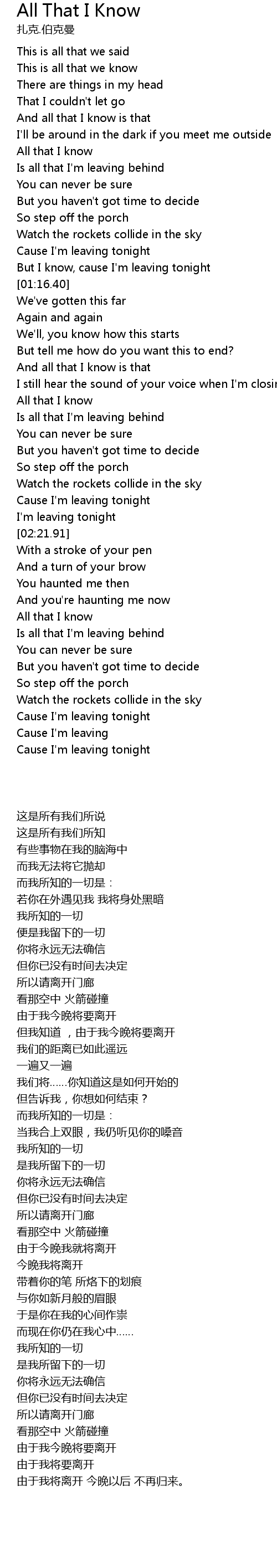 But I know, cause I'm leaving tonight |