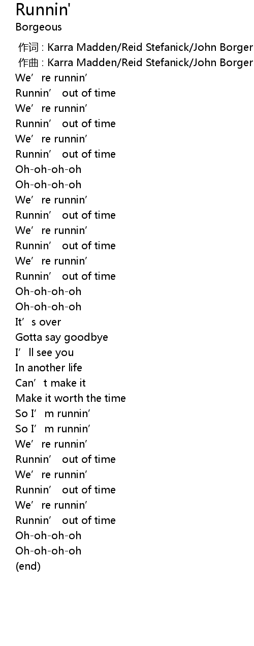 | [00:00.00] | 作词 : Karra Madden/Reid Stefanick/John Borger |