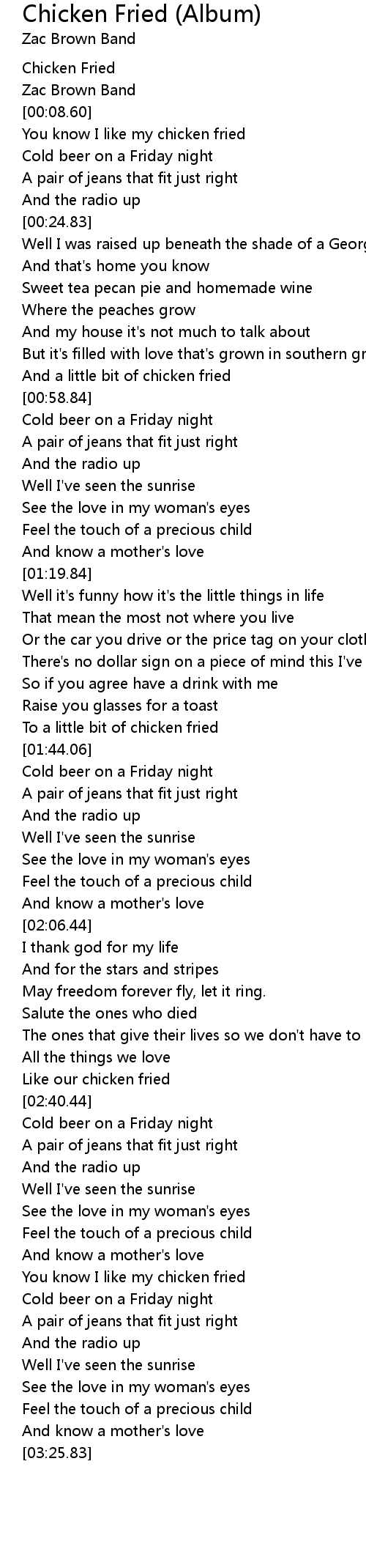 You know I like my chicken fried |