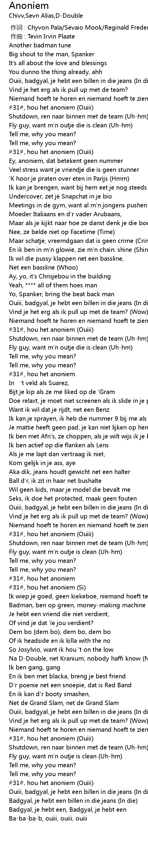 | [02:54.92] | #31#, hou het anoniem (Ouiii) |