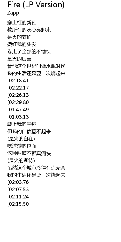 | [00:43.00] | 我的生活还是要一次烧起来 |