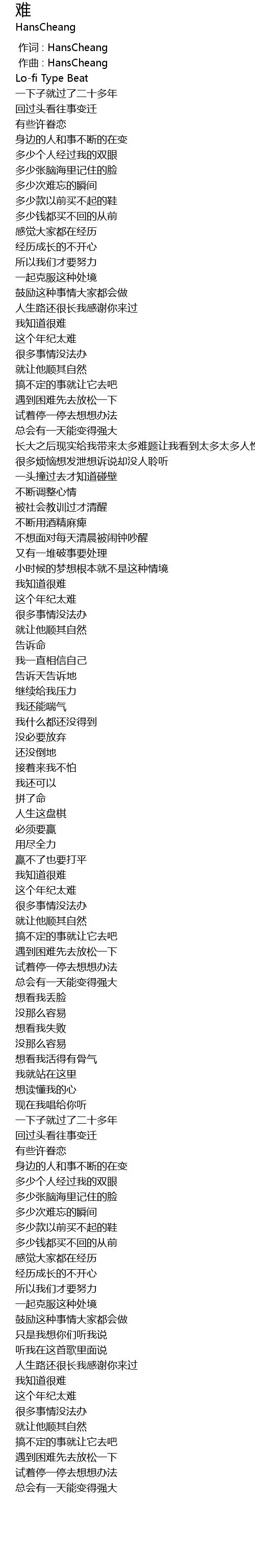 | [00:00.000] | 作词 : HansCheang |