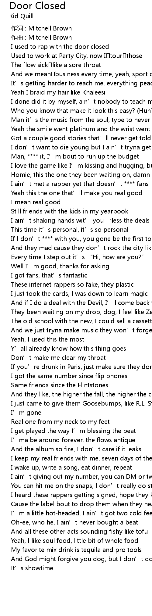 | 歌曲 | Door Closed |