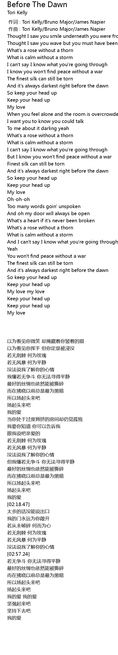 | [02:02.62] | 而在拂晓以前总是最为黑暗 |