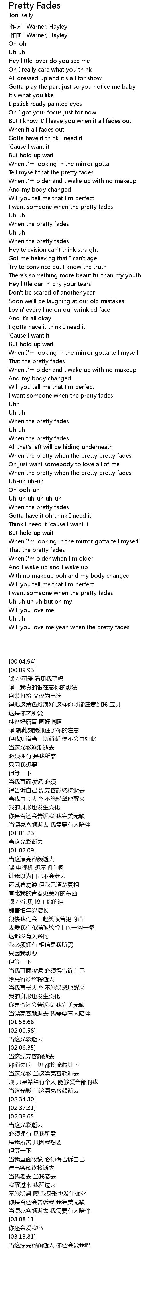 | [03:14.59] | Will you love me yeah when the pretty fades |