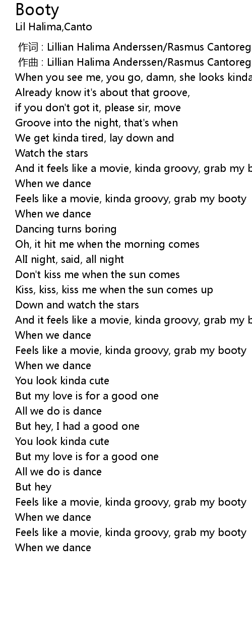 | [02:04.407] | Feels like a movie, kinda groovy, grab my booty |