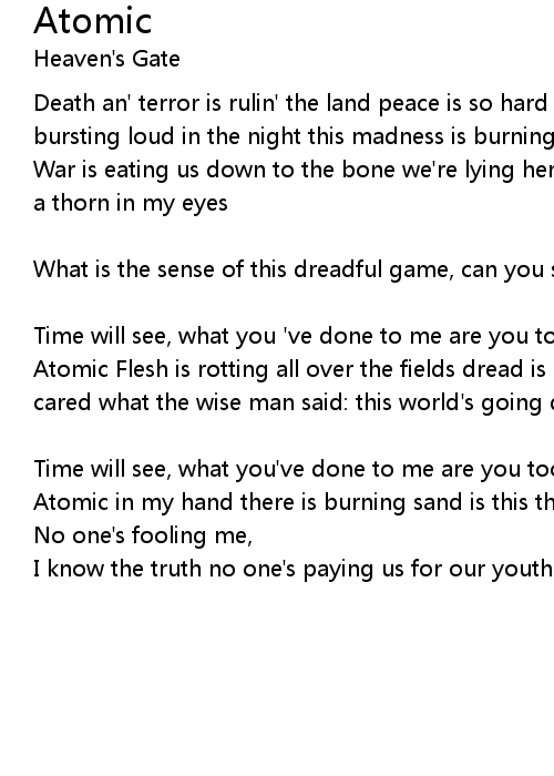 Atomic Flesh is rotting all over the fields dread is spreading unbound nobody cared what the wise man said: this world's going down to the ground [PRE-CHORUS] [CHORUS:]