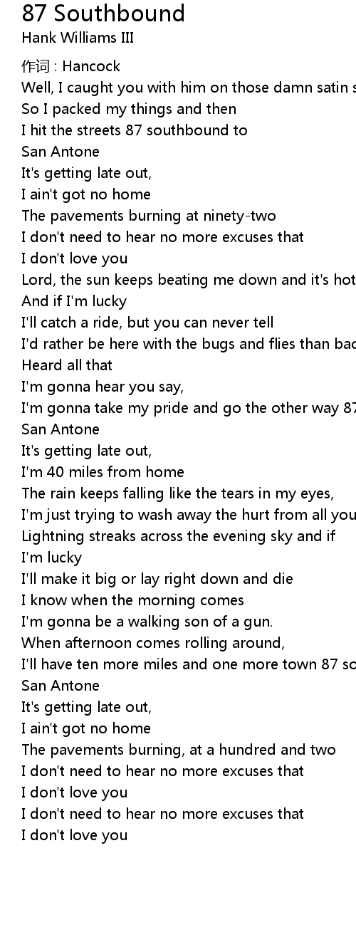 | I'm gonna take my pride and go the other way 87 southbound to | |