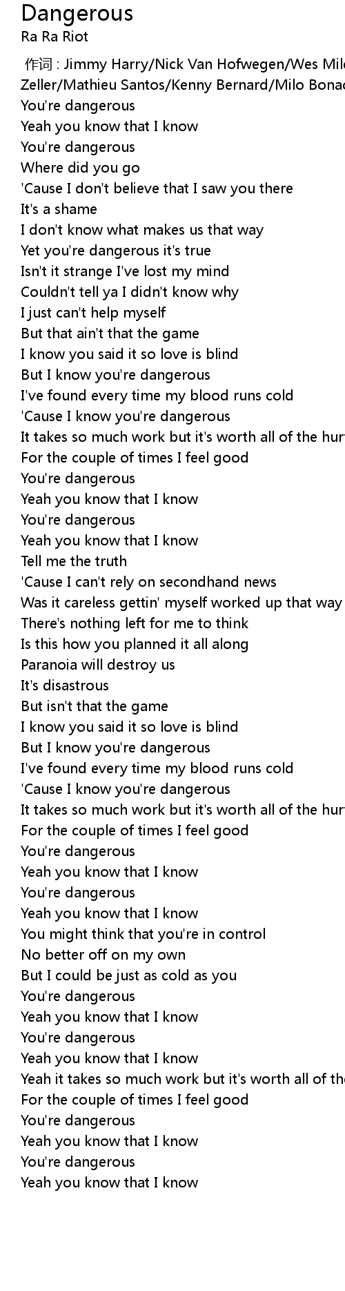 | [00:58.60] | ' Cause I know you' re dangerous |