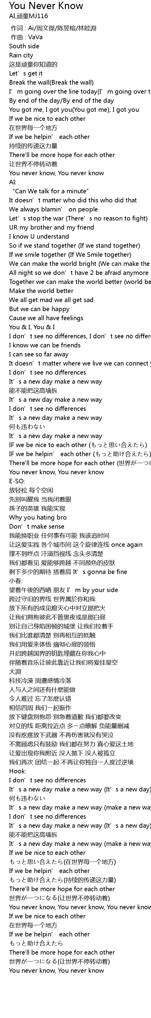 | [02:05.50] | IF we be helpin' each other zhù hé |
