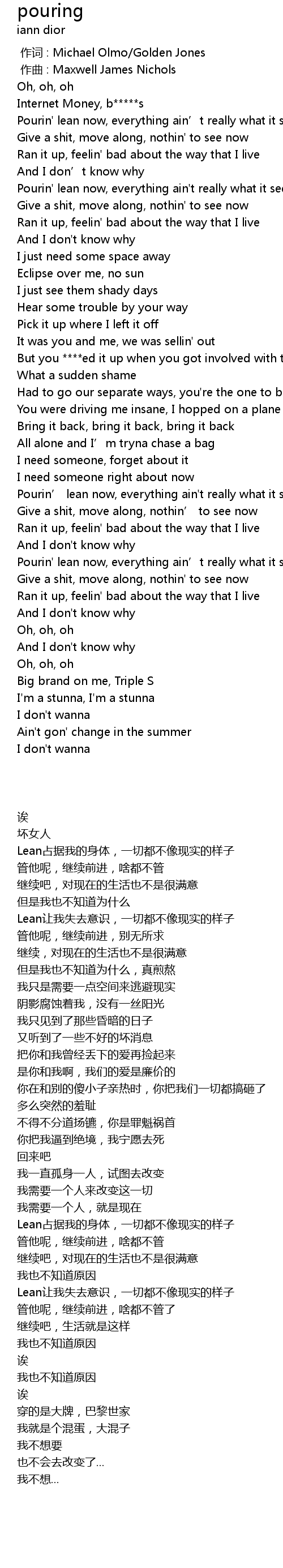 | [01:04.75] | Pourin’ lean now, everything ain't really what it seems now |