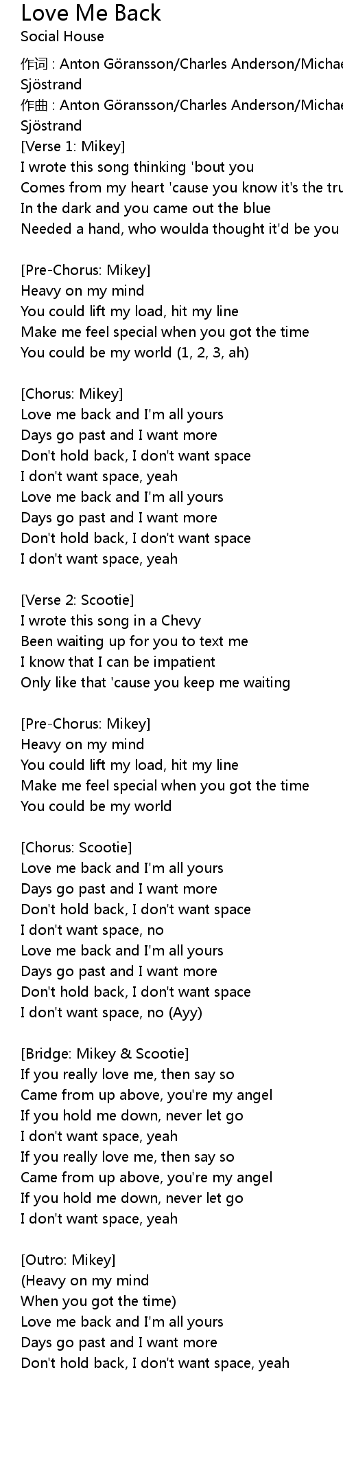 | 歌曲 | Love Me Back |