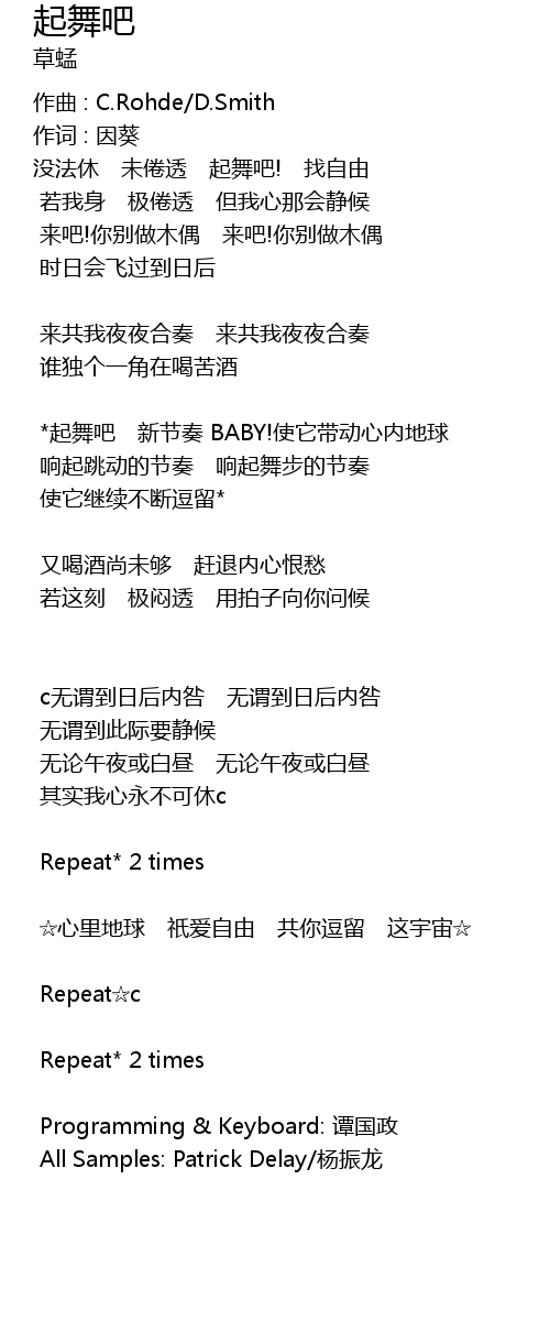 | *起舞吧 新节奏 BABY!使它带动心内地球 | |