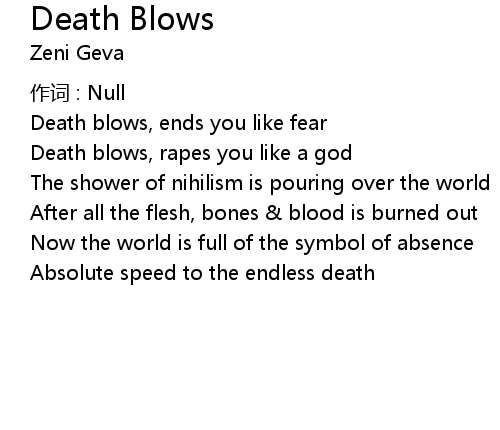 | Death blows, ends you like fear | |