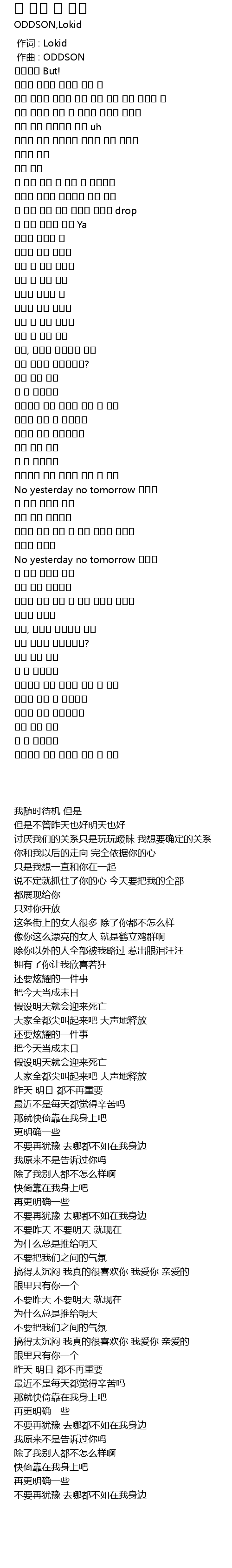 | [01:35.861] | No yesterday no tomorrow 지금해 |