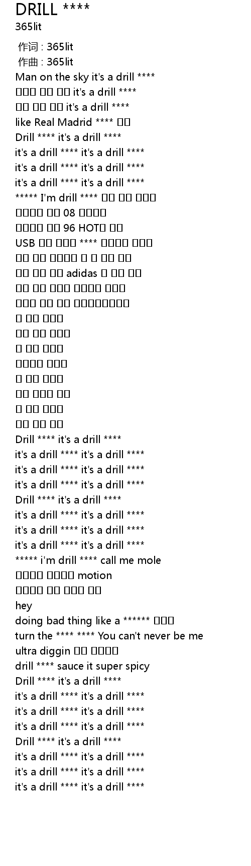 | [00:34.100] | it's a drill **** it's a drill **** |