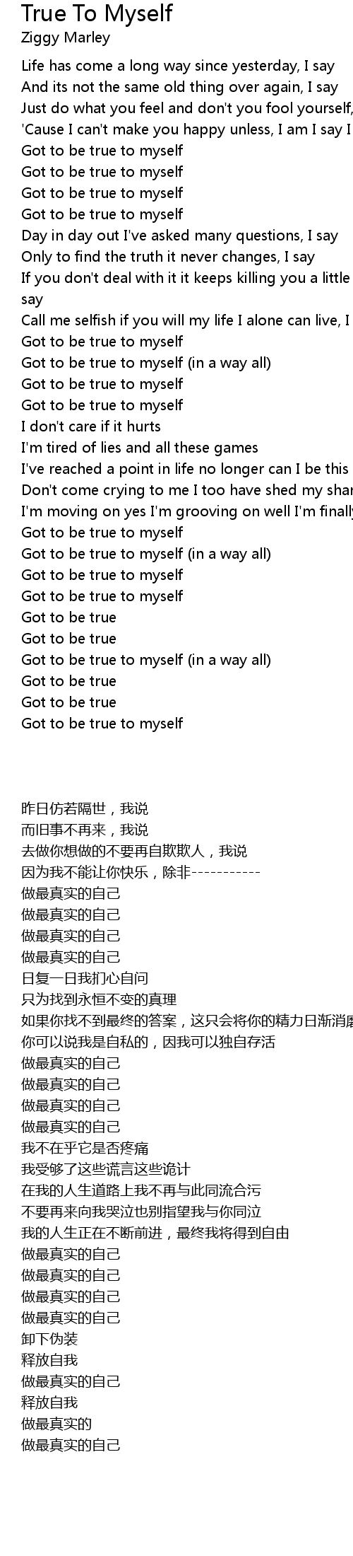 Got to be true to myself (in a way all) |