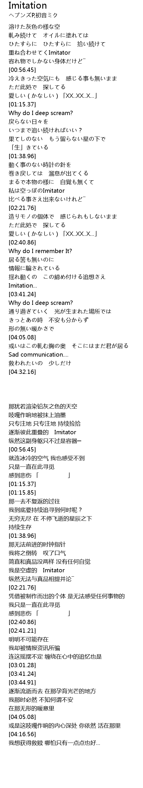 | [02:13.86] | 私は空っぽのImitator |
