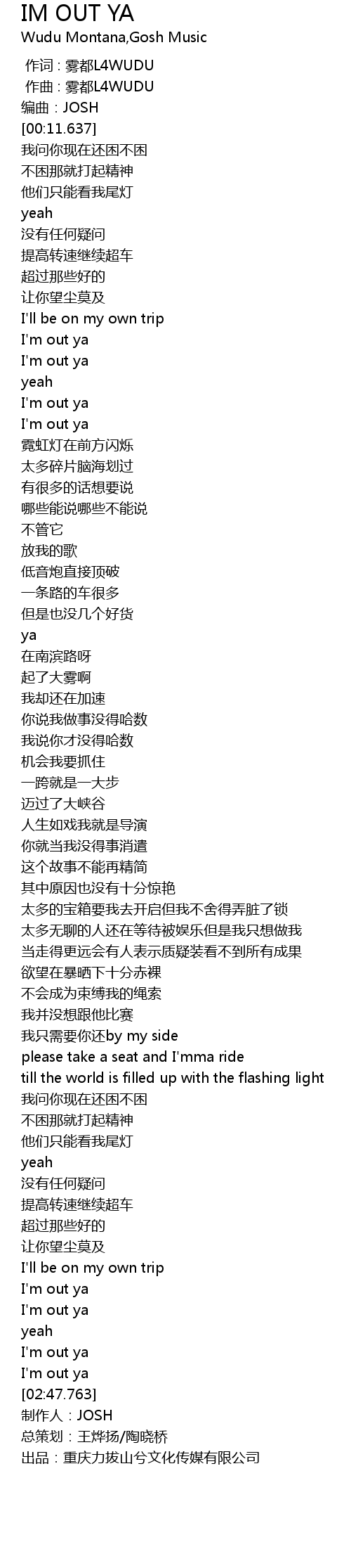 | [00:00.000] | 作词 : 雾都L4WUDU |