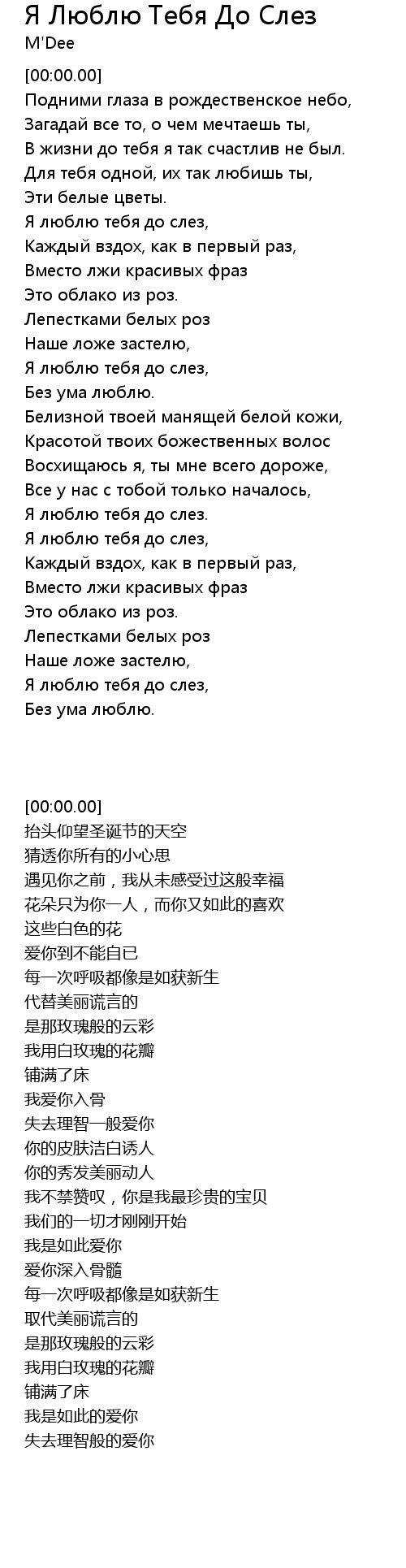 | [00:44.406] | Для тебя одной, их так любишь ты, |