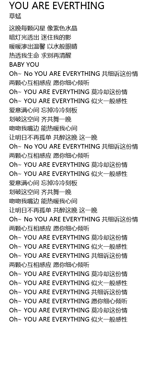 | [01:15.61] | Oh YOU ARE EVERYTHING shì huǒ yì bān gǎn xìng |