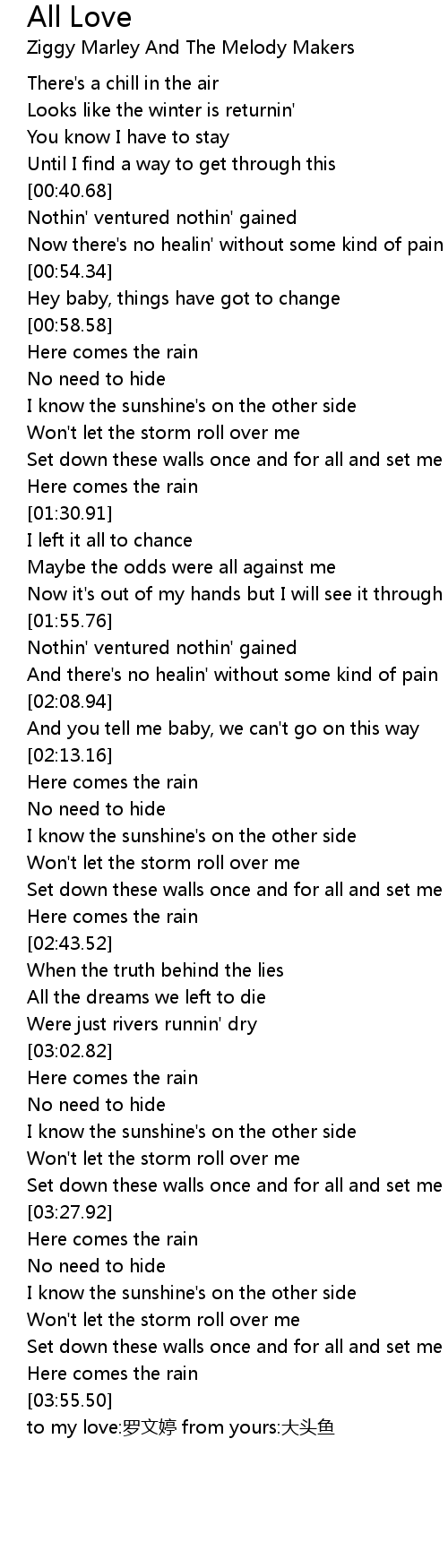 | [03:59.27] | to my love: luó wén tíng from yours: dà tóu yú |