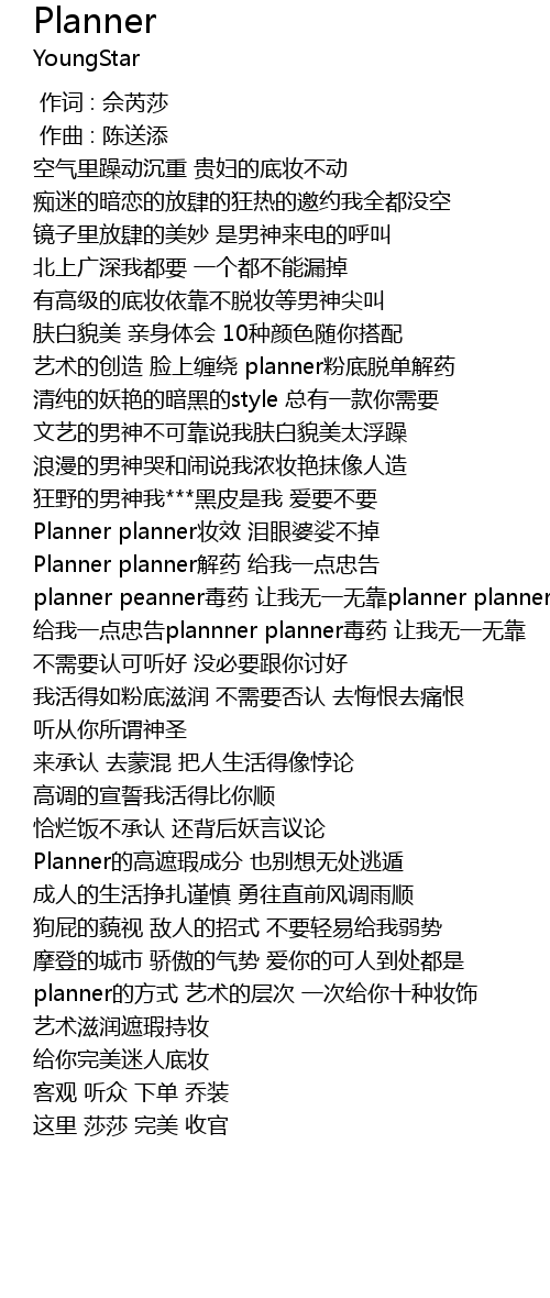 | [01:06.422] | planner peanner毒药 让我无一无靠planner planner解药 |